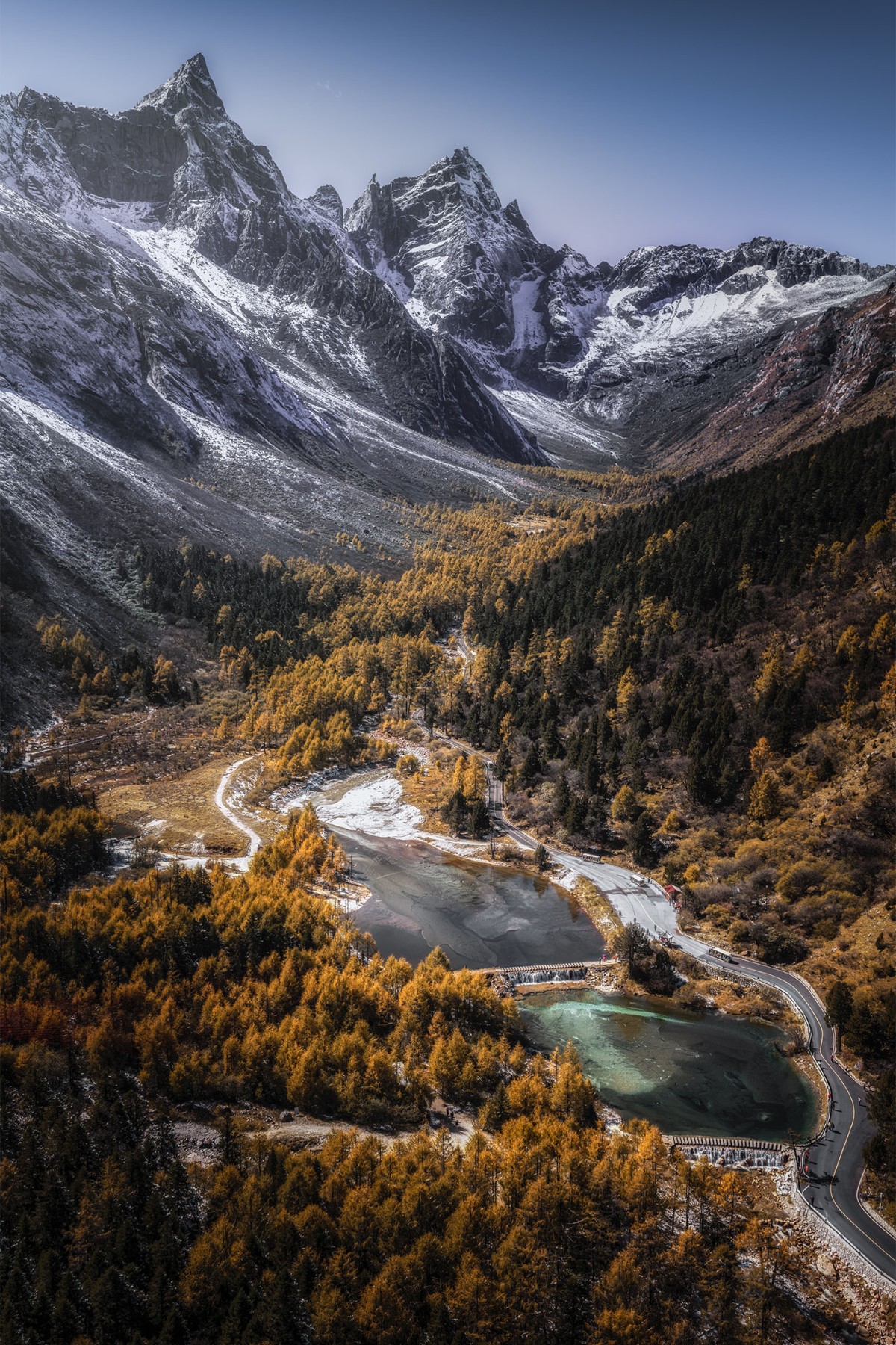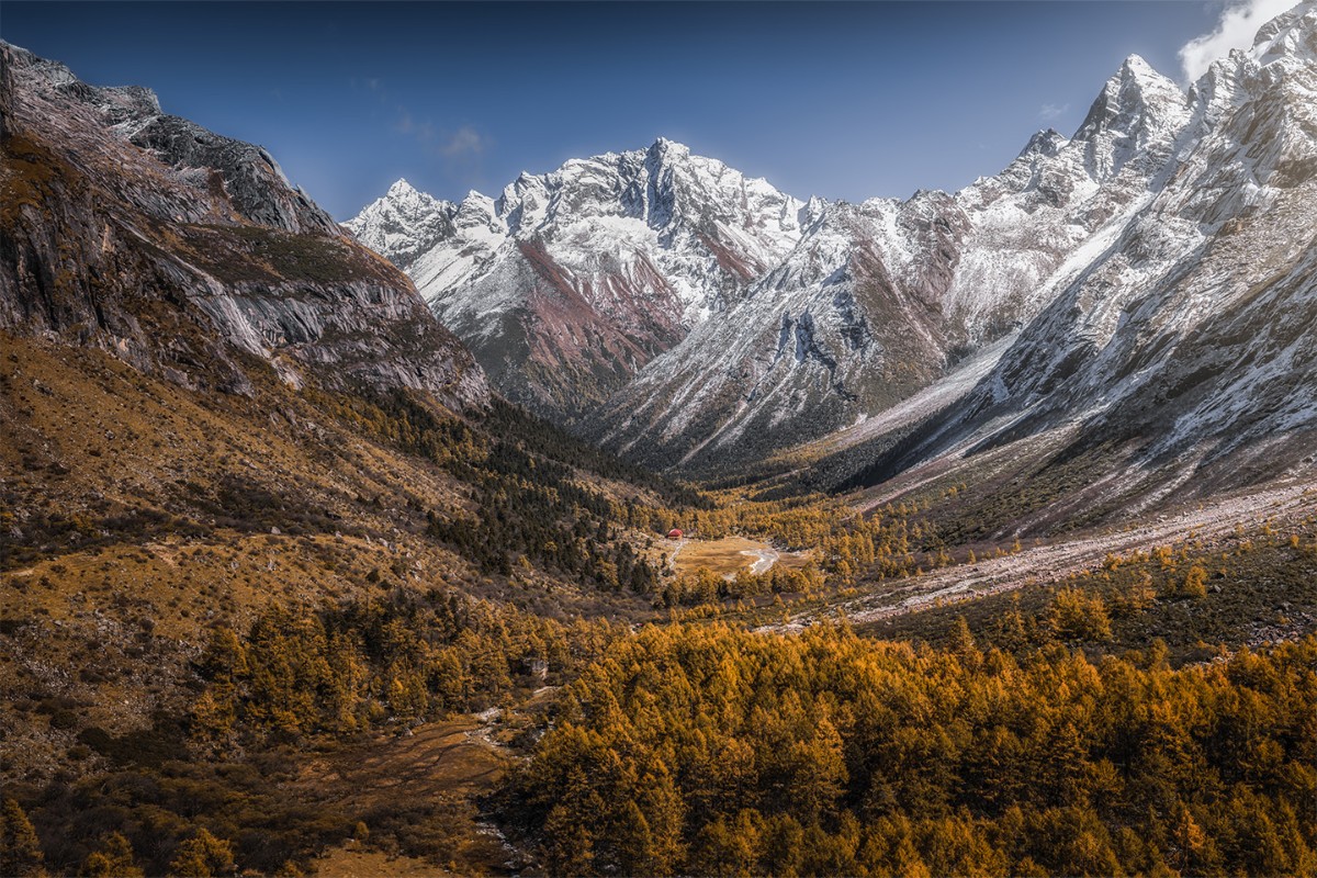 深秋时节的川西,藏着全年最动人的风景。毕棚沟与四姑娘山这对“山水CP”,在海拔3000米的高原上碰撞出极致色彩——四姑娘山的雪峰银白耀眼,毕棚沟的彩林金黄似火,再配上澄澈蓝天与碧绿湖泊,每一处都让旅行者挪不开眼。作为“东方阿尔卑斯”的四姑娘山,双桥沟是轻松出片的首选,观光车直达雪山腹地,布达拉峰下的公路是拍大片的绝佳机位,撵鱼坝的雪山漂流能近距离触摸冰川融水,人参果坪的草甸上牛羊悠闲漫步,随手一拍都是治愈画面。