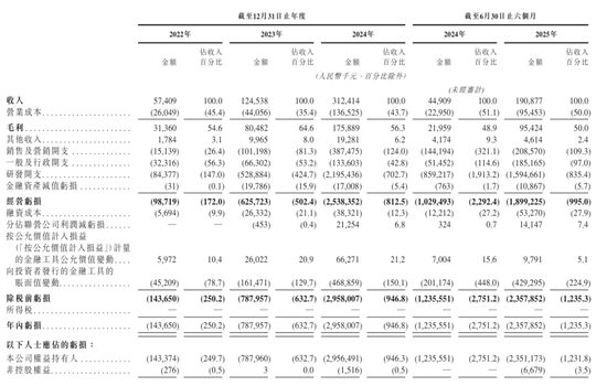 智谱AI在2025年上半年营收为1.91亿元,上年同期为4491万元;智谱AI目前仍处于亏损状态,主要是研发费用高达16亿元。