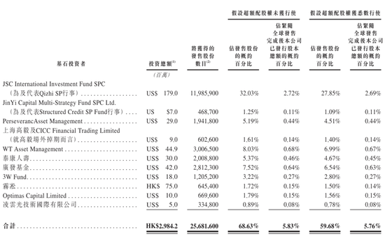 其中,JSC International Investment Fund SPC认购1.79亿美元,JinYi Capital Multi-Strategy Fund SPC Ltd认购700万美元,PerseverancAsset Management认购2900万美元,上海高毅认购900万美元,WT Asset Management认购4490万美元,泰康人寿认购3000万美元,广发基金认购4200万美元,3W Fund认购1800万美元,雾凇认购7500万美元,Optimas Capital Limited认购1000万美元,凌云光技术国际有限公司认购500万美元。